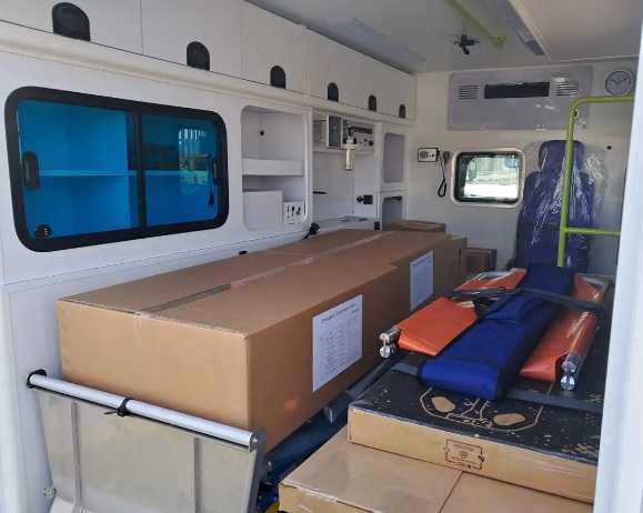 Автомобіль швидкої медичної допомоги на шасі KIA Bongo прибув не тільки укомплектований за стандартами Всесвітньої організації охорони здоров’я, але й вщерть завантажений “виробами медичного призначення та лікарськими засобами”.